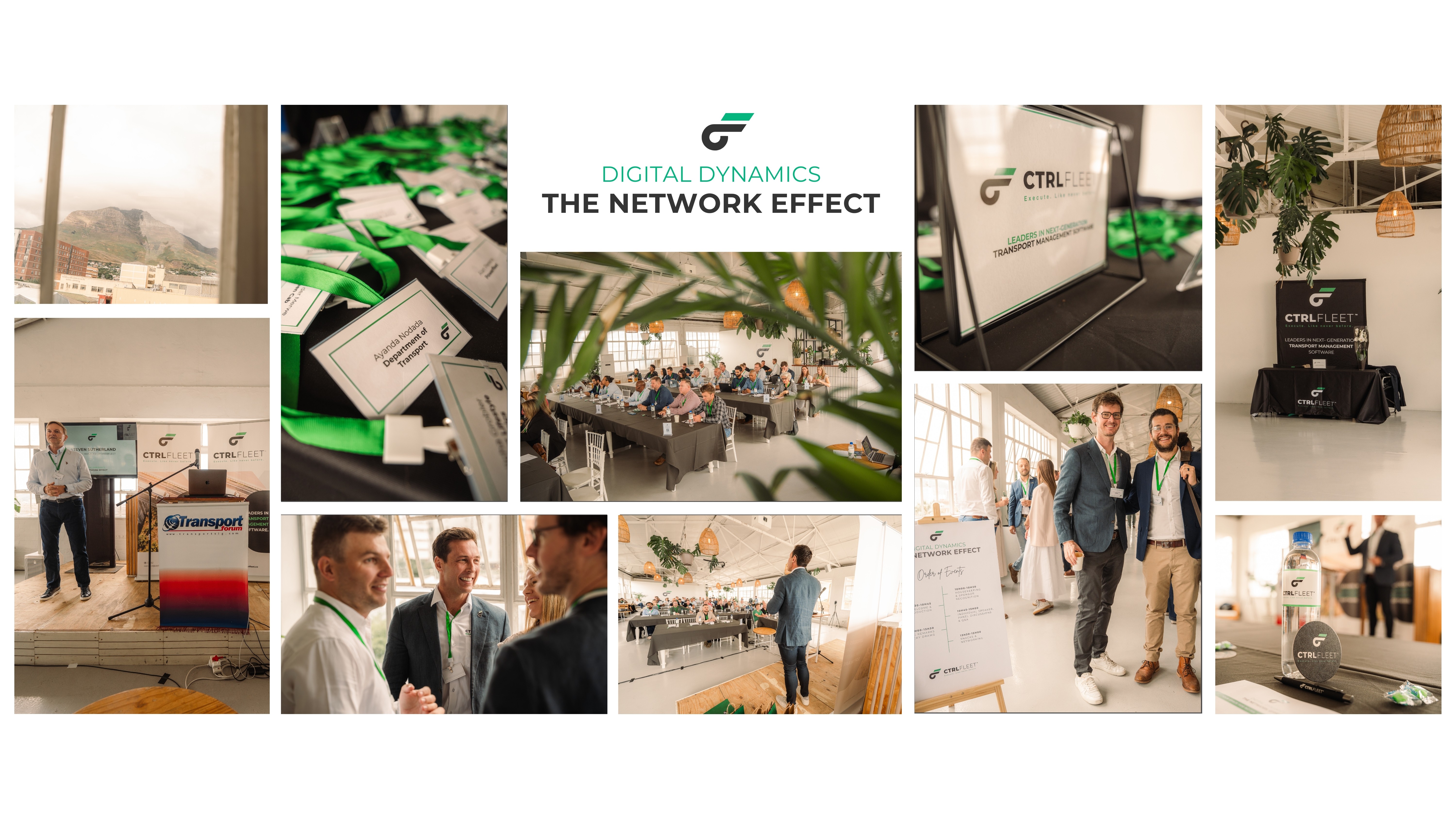 The event brought together a diverse group of thought leaders and innovators who shared insights on technology, data, and transformation in the transport and logistics sector. Speakers included Renko Bergh (CtrlFleet), Reinhardt Pieterse (TFN), Danielle Afriat (Mint), Morne van den Berg (Veriserv), Ian van Niekerk (Cyberlogic), Nicolaas van Reede (Ctrack), Greg Naicker (PowerFleet), and Steve Bure (FleetIT).